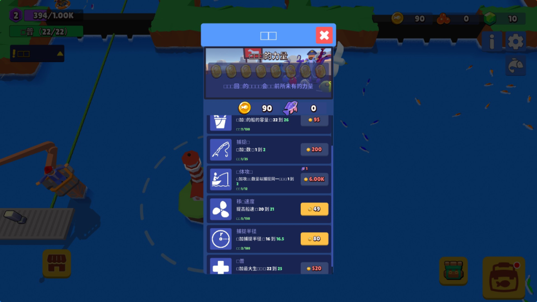 同时,捕鱼所换取的金币可用于提升船只航速、捕捞速度、渔网大小,或是将整艘渔船升级至更高等级;而在积累的财富足够多后,玩家还可以解锁闲置渔场、雇佣渔船,进一步扩大自己的捕鱼帝国。