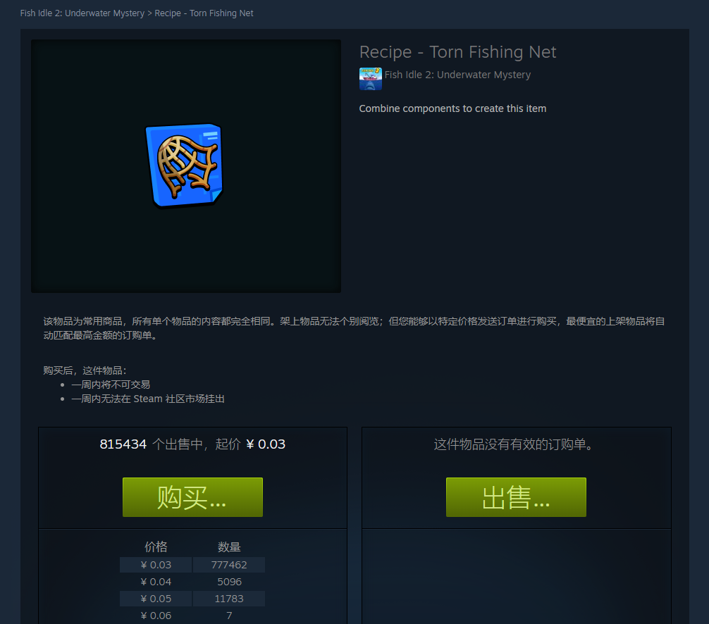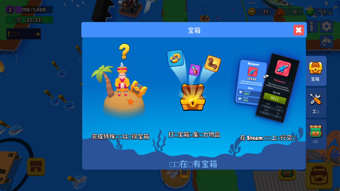 这还不算完,真正的高招在后头——《Fish Idle 2》不仅支持宝箱中开启的装备在Steam市场交易,而且玩家通过稀有鱼换取的稀有宝箱也可以在Steam流通。这也就解释了,为什么一款皮相看上去没啥卖点的游戏,能在Steam有这么多活跃玩家了。