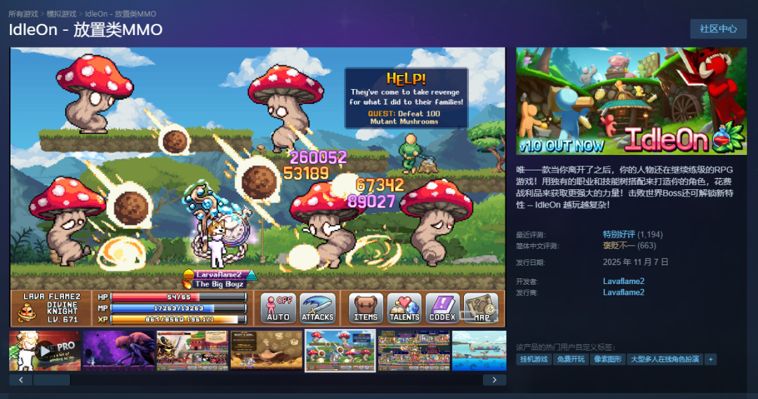 而像《IdleOn -放置类MMO》这种糅合了轻度放置和角色成长的长线运营产品,更是混得风生水起——老实说,你觉得挂机MMO手游做得飞起的国内厂商,来Steam做一款类似的产品打不过这款像素风MMO吗?非不能也,实不为也。