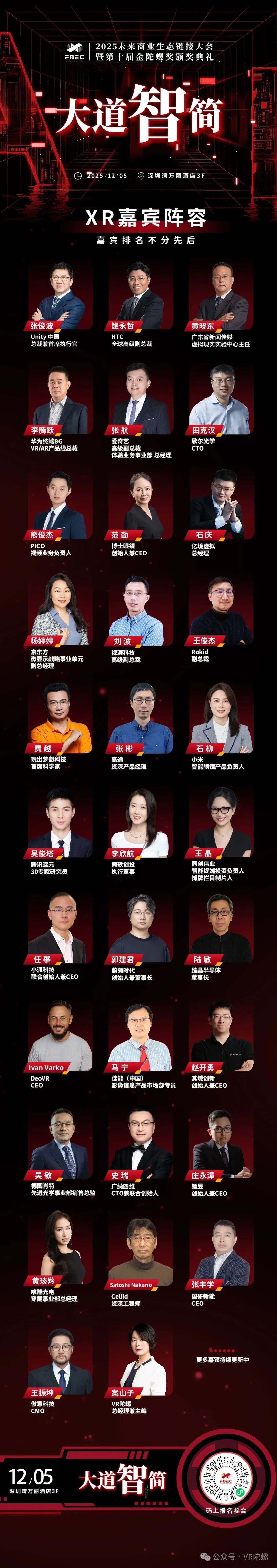 2025未来商业生态链接大会暨第十届金陀螺奖颁奖典礼(以下简称“FBEC2025”) 将于2025年12月5日在深圳湾万丽酒店盛大召开。本次大会由广东省游戏产业协会、深圳市互联网文化市场协会共同指导,陀螺科技主办,游戏陀螺、VR陀螺、陀螺财经、陀螺电竞、前方智能联合主办。大会以“大道智简”为核心主题,聚焦游戏、XR、AI、电竞等前沿领域及行业热点议题,探讨新科技、新商业、新模式的未来价值共同探索技术本质,把握变革先机,让我们与所有探索者执简驭繁,共赴星海,破晓而行!