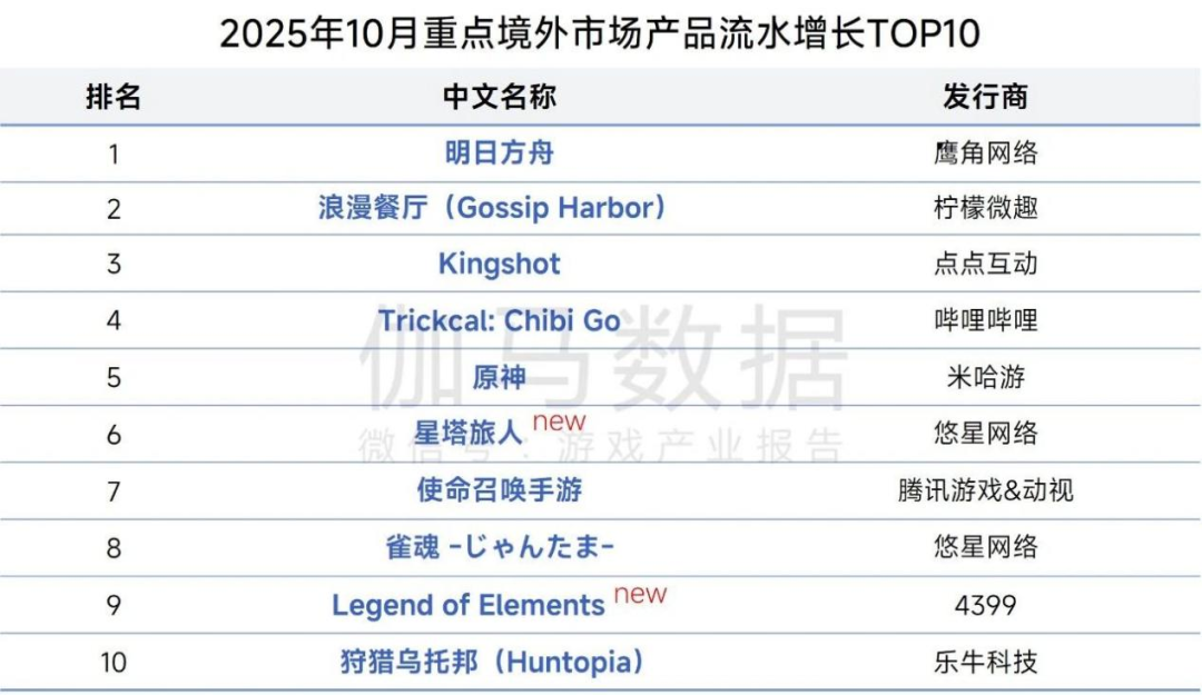 在10月的移动游戏流水测算榜上,上述提到的《王者荣耀》《三角洲行动》《无尽冬日》均凭借出色表现稳居排行榜TOP3。报告显示,10月半数产品排名与上个月持平,其他产品排名变动幅度均未超过5位,头部市场格局相对稳定。
