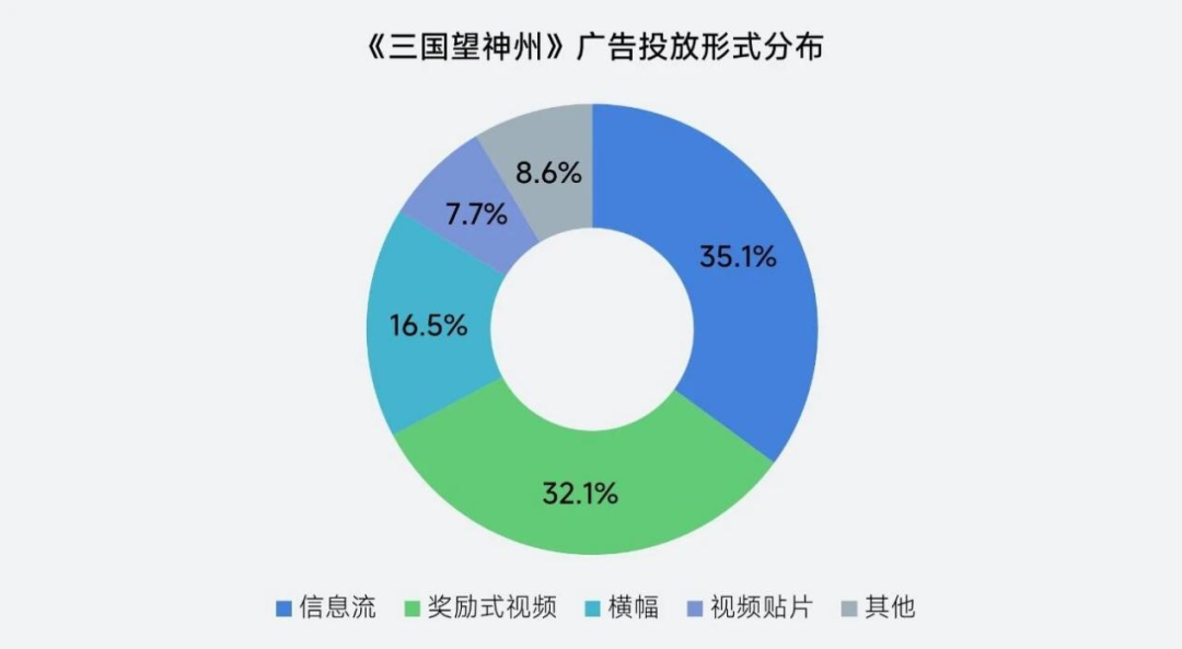 在分析游戏行业各个市场收入之外,报告还以《三国望神州》为例分析游戏的投放策略,该游戏上线初期广告投放集中于信息流广告与奖励式视频,占比达67.2%,体现出当前手游推广对视觉化、互动式广告形式的依赖。