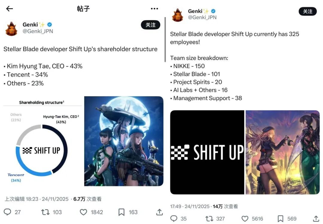 值得一提的是,近日爆料博主推主@Genki_JPN在社交媒体分享了SHIFT UP当前的公司概况,指出SHIFT UP目前拥有325名员工,而《Project Spirits》项目目前有20人。
