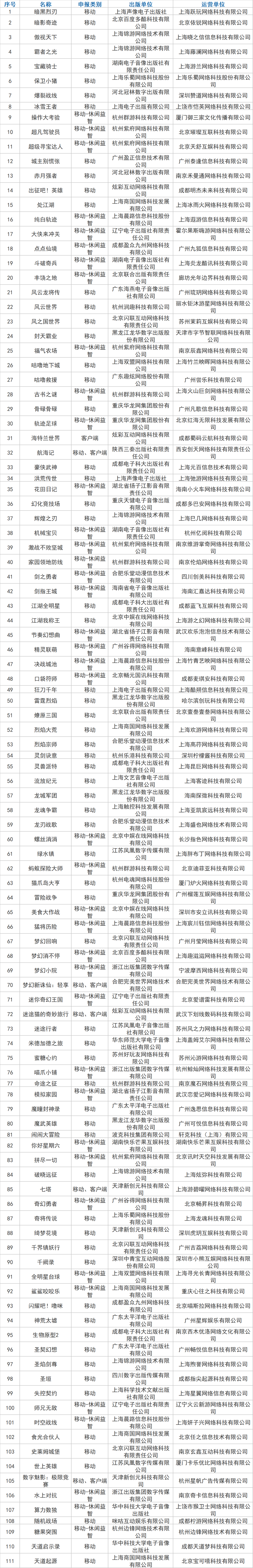 11月27日,国家新闻出版署官网发布了最新一批网络游戏版号名单。