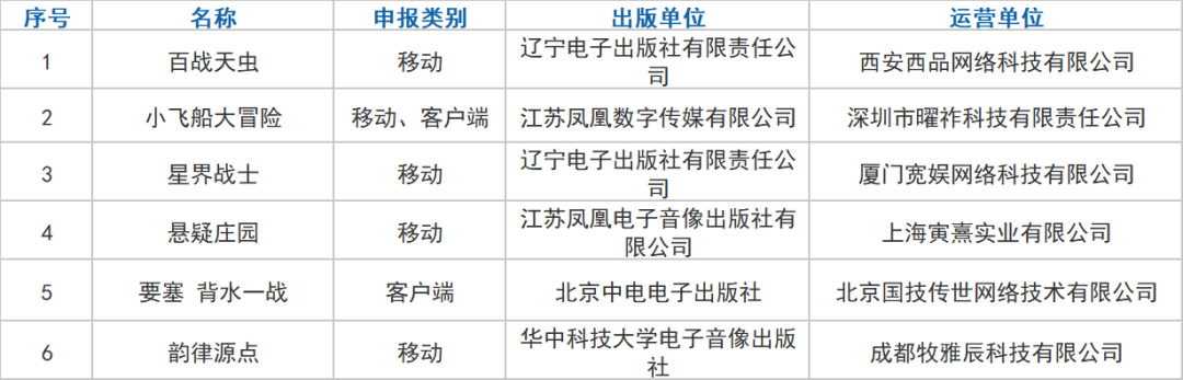 获批的重点企业、重点游戏产品包括: