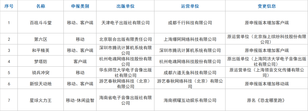 另外,在版号变更中,腾讯的《和平精英》增报了客户端版本。