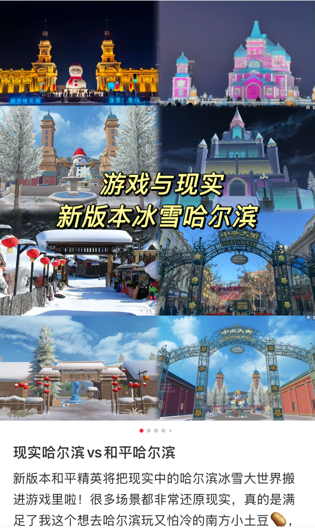 不同于在游戏地图中放一个打卡点的轻量级植入,这次与哈尔滨文旅的合作,展现出的是一种“数字孪生”级别的复刻,以及与核心玩法的深度融合。