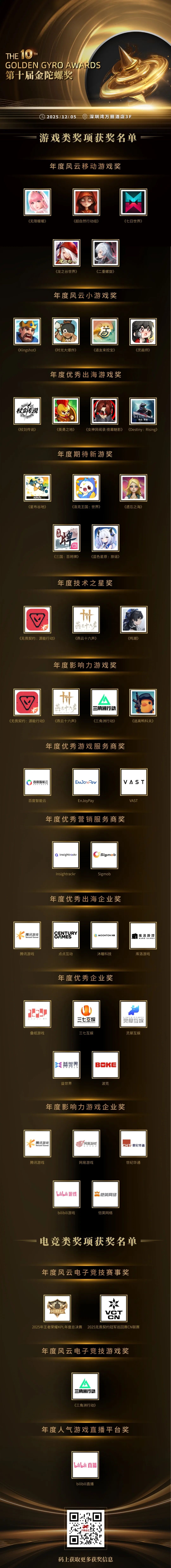 第十届金陀螺奖设立游戏类、电竞类和XR类三大类别,涵盖 30项细分奖项,经过为期近3个月的报名参评、线上投票、专家评审后,获奖名单于今日重磅揭晓!金陀螺奖作为年度行业影响力大奖,受到业界的广泛参与和认可,旨在表彰和铭记在行业中勇毅前行的领航者,创新进取的从业者们!