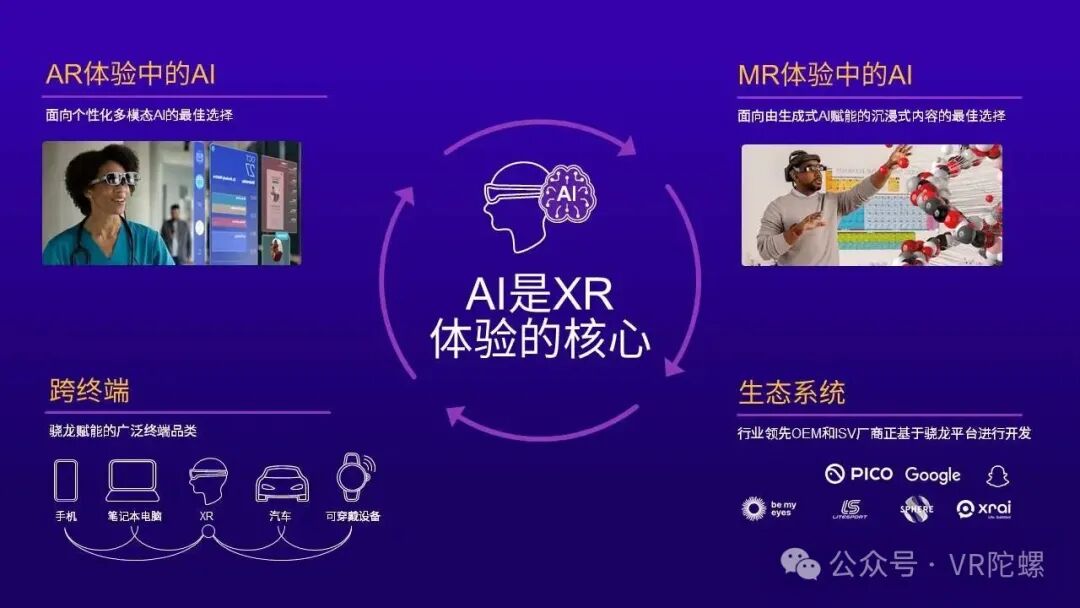 在生态系统方面,我们看到众多领先的OEM厂商、独立软件供应商,以及大型内容分发与创作平台,已开始采用基于骁龙XR的AI技术,来充分发挥AI能力,将XR体验推向新阶段。