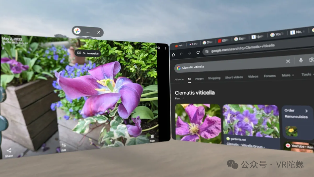 多任务处理:虚拟桌面可与 Galaxy XR 上的原生应用并排使用。例如,用户可以一边在虚拟桌面上工作,一边在旁边播放 YouTube 教程。
