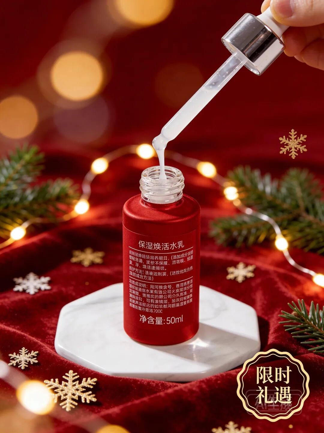 给它一个产品,再加点指令:“为我的产品生成一张圣诞主题的促销氛围背景”。