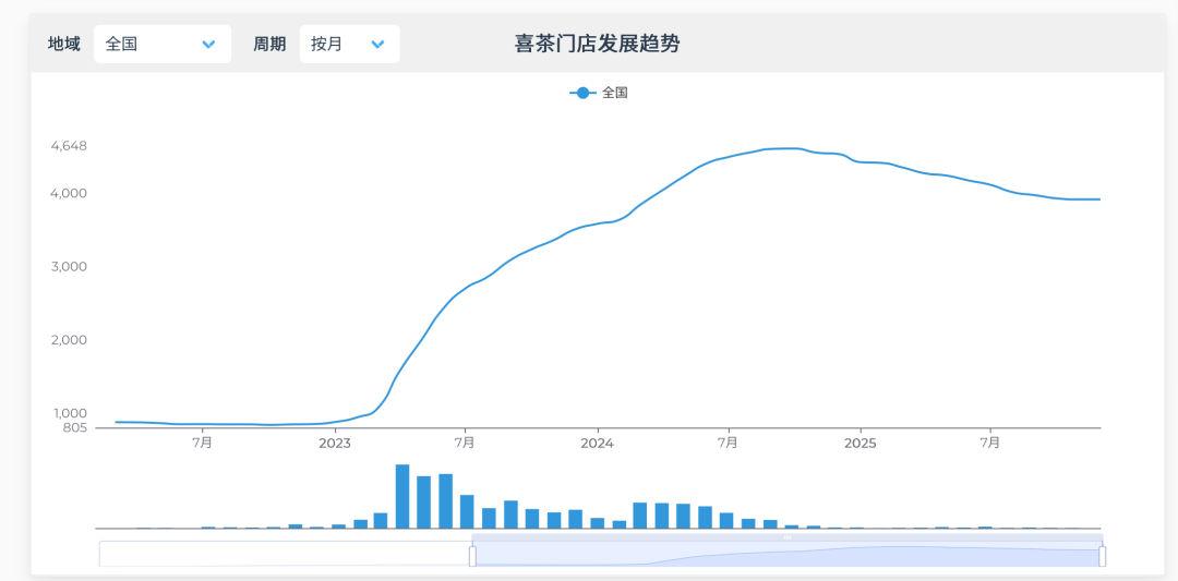 回首三年前的2022年11月,长期坚持直营模式的喜茶宣布开放加盟。此后,其门店数量如雨后春笋般迅猛增长,最高时一个月能开店500余家。