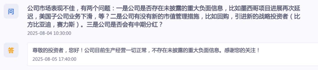 值得注意的是,在火灾事故发生后,有投资者曾于今年8月在互动平台上询问公司是否存在未披露的重大负面信息,但岱美股份当时回复称“生产经营一切正常,不存在未披露的重大负面信息”。