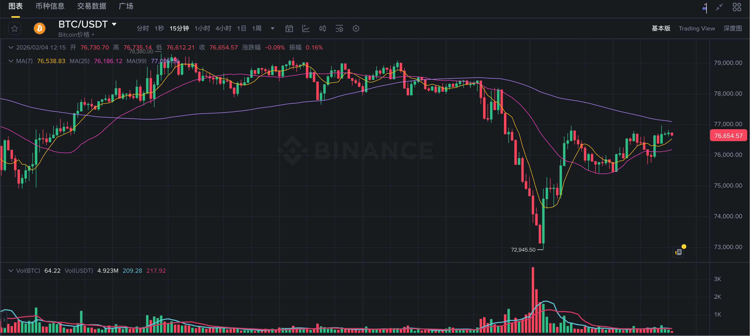 今日凌晨,比特币跌破 7.3 万美元,创下 2024 年 11 月 4 日以来的最低点,抹去了自美国总统特朗普连任以来的所有涨幅。尽管比特币随后快速反弹至 7.6 万美元上方,但进一步下跌的态势仍重创市场信心,并带动整个加密市场普遍下跌。据 CoinAnk 数据,截至撰稿时,过去 12 小时全网爆仓金额达到约 4 亿美元,其中多单爆仓超 3 亿美元。与此同时,Alternative.me 数据显示,今日加密货币恐慌与贪婪指数再度降至 14,市场处于「极度恐慌状态」。
