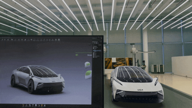 使用NVIDIA CloudXR、Apple Vision Pro和Autodesk VRED打造的起亚Vision Meta Turismo概念车。图片来源:Apple 、Kia