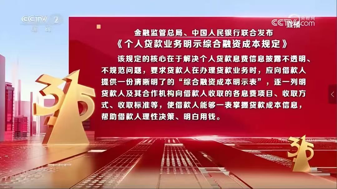 今年的央视315晚会上,国家金融监管总局和中国人民银行联合发布《个人贷款业务明示综合融资成本规定》,成为重磅金融信号。该规定核心在于解决个人贷款息费信息披露不透明、不规范问题,要求贷款人在办理贷款业务时,应向借款人提供一份清晰明了的“综合融资成本明示表”,逐一列明贷款人及其合作机构向借款人收取的各息费项目、收取方式、收取标准等,使借款人能够一表掌握贷款成本信息,帮助借款人理性决策、明白用钱。