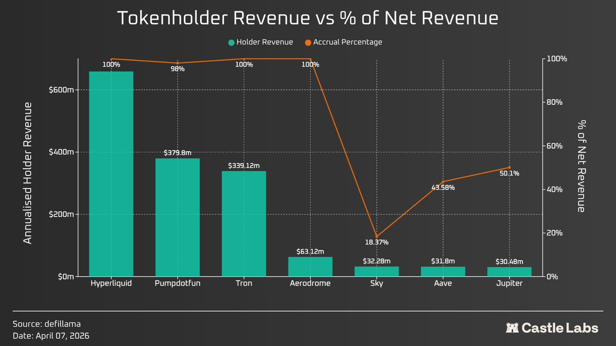下文,我们将讨论每位加密投资者在分析代币时都应考虑的关键指标。我们分析了过去 30 天内收入最高的顶级代币协议,包括 Hyperliquid(HYPE)、Pumpdotfun(PUMP)、Tron(TRON)、Sky(SKY)、Jupiter(JUP)、Aave(AAVE)和 Aerodrome(AERO)。