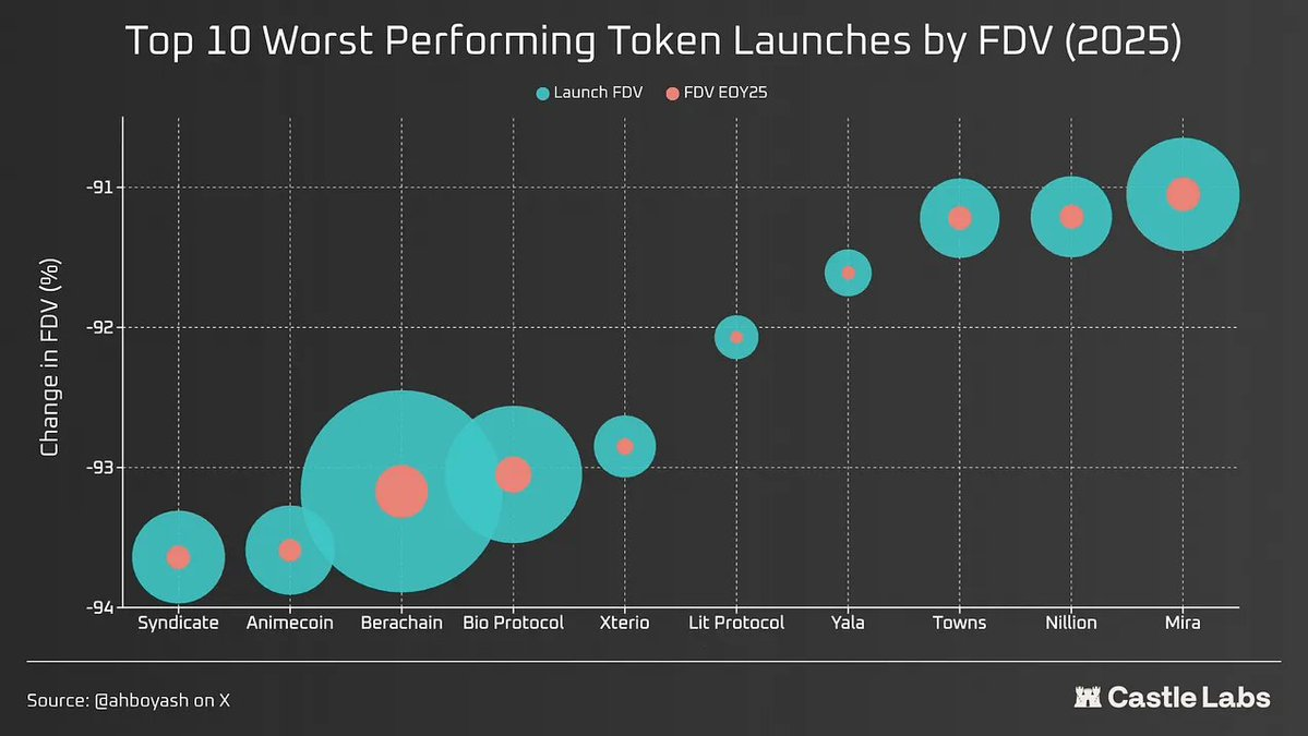 以去年的代币生成事件(TGE)为例,大多数项目最终被归类为糟糕的投资,因为它们最终都给代币持有者带来了重大损失。价格下跌的原因可能包括糟糕的代币经济模型、过高的发行估值(多数如此)、市场与项目情绪低迷等。