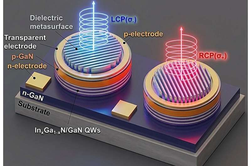 该研究资深作者Shuhei Ichikawa教授评价道:“通过利用半极性铟镓氮LED固有的线偏振发射特性,我们实现了超越传统方法极限的高圆偏振转换效率。只需集成单层超表面,即可获得高效率圆偏振光,该技术在下一代光学应用的紧凑型设备与实用光子系统中,将展现出巨大的应用潜力。”