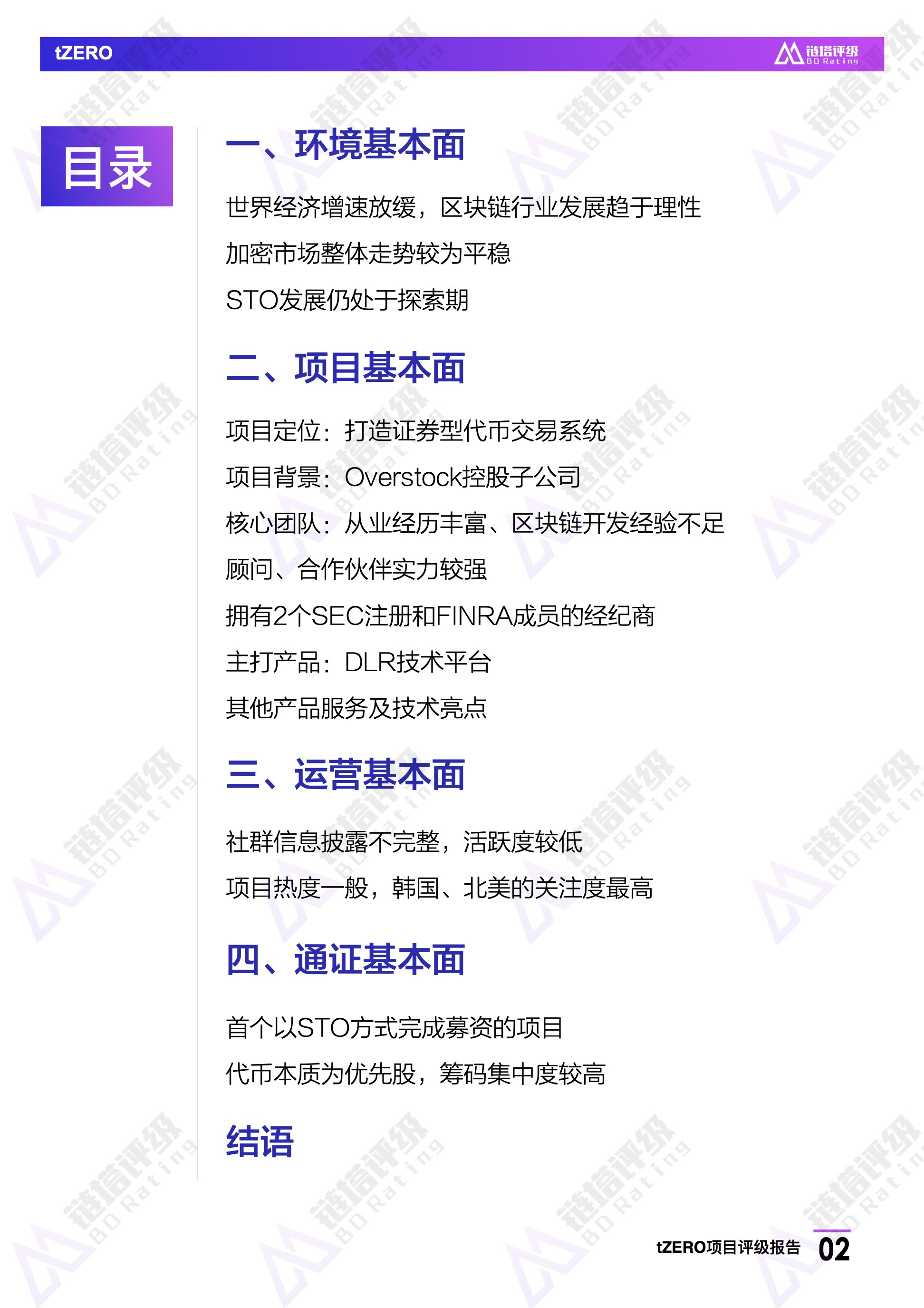 tZERO致力于打造服务于证券型代币的交易系统,旨在将区块链技术和现有的金融市场流程结合起来,以减少结算时间和成本,提高透明度、效率和可审计性。链塔行研团队从环境、项目、运营、通证四个方面进行调查分析,给予tZERO项目B级评级,展望为正面。