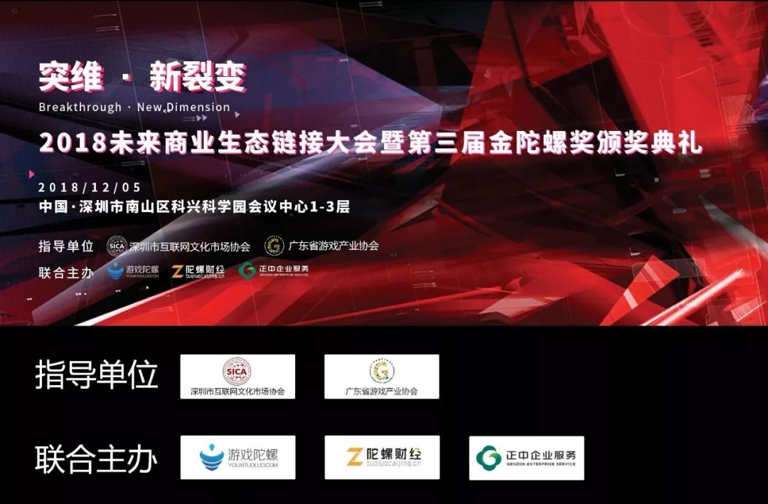 由深圳市互联网文化市场协会、广东省游戏产业协会指导,游戏陀螺、陀螺财经、正中企业服务联合主办的2018未来商业生态链接大会暨第三届金陀螺奖颁奖盛典(简称“FBEC2018”)将于2018年12月5日在深圳市南山区科兴科学园会议中心1-3层举办,本届大会以“突维 · 新裂变”为主题,涵盖游戏及数字娱乐、区块链技与应用、VR/AR/AI等多个行业。