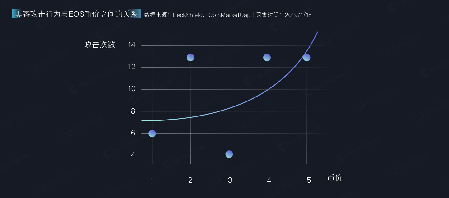 EOS在目前DApp之争中遥遥领先,但也已成为黑客的沃土。尤其EOS通过抵押机制几乎消除了手续费,这让黑客攻击成了无本获利的买卖。黑客攻击与二级市场币价之间有着微妙关系。