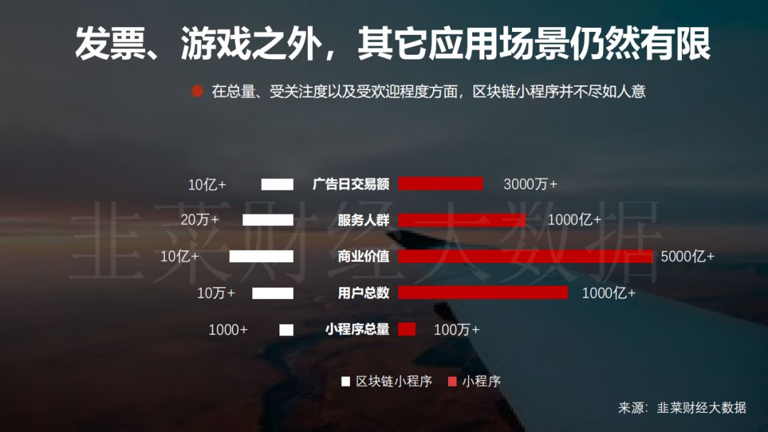 但区块链有未来吗?答案是肯定的。小协议之后,又诞生了不少区块链小程序,包括有官方背景的产品以及巨头打造的产物,韭菜财经大数据在此份报告中均做了呈现。