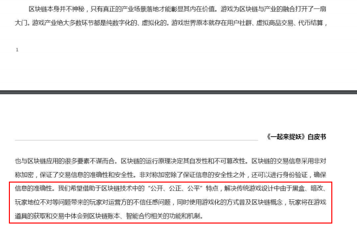 2018年4月区块链大热时,腾讯发布了《一起来捉妖》白皮书,据官方介绍这是腾讯首款区块链游戏化应用,白皮书中提到,“《一起来捉妖》是由腾讯游戏创新工作室与腾讯区块链联合开发的一款以增强现实技术(Augmented Reality,简称AR)抓宠玩法为核心进行体验且使用区块链技术储存游戏中数字宠物的休闲类手机游戏”, 这款游戏于2018年4月13日亮相UP2018腾讯新文创生态大会,同年5月10日在成都开启了安卓版内测,但在2019年4月11日官网发布的上线快讯和应用商店中的游戏介绍关于“区块链技术”只字未提,难道,腾讯去年说的“区块链”是在玩概念?炒作?