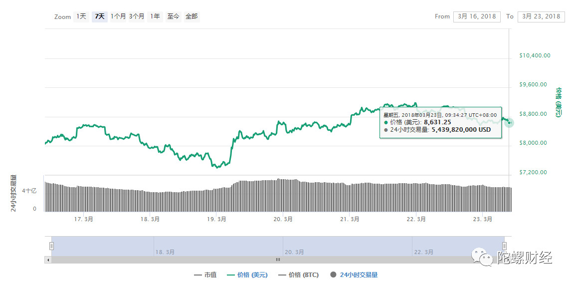 而比特币方面,截至目前,比特币价格为:8631美元。