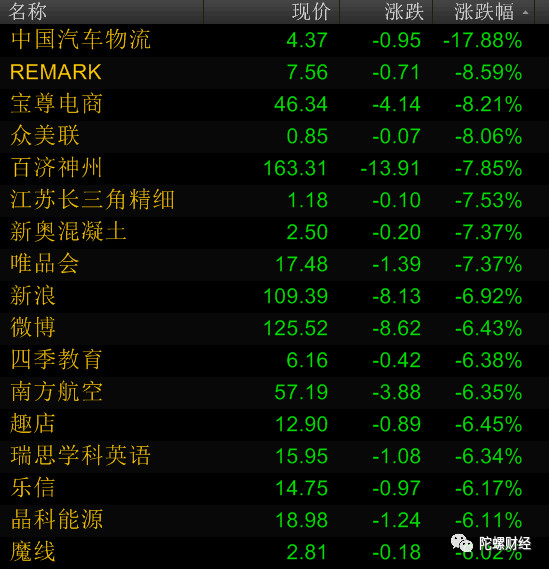 还有,在美国上市的中概股,跌幅也非常惨重。截至发稿,唯品会下跌7.5%,微博下跌6.5%,南方航空下跌6.35%,百度跌4.8%,网易下跌4.6%,阿里跌超4%。